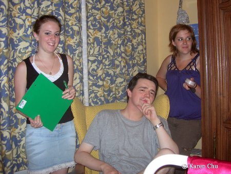 Tranquillement installé dans son fauteuil, notre réal’ entouré de ses assistantes… |