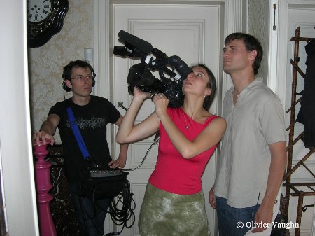 Cadrage en contre-plongé pour Angelica, Philippe et Bérenger observent |